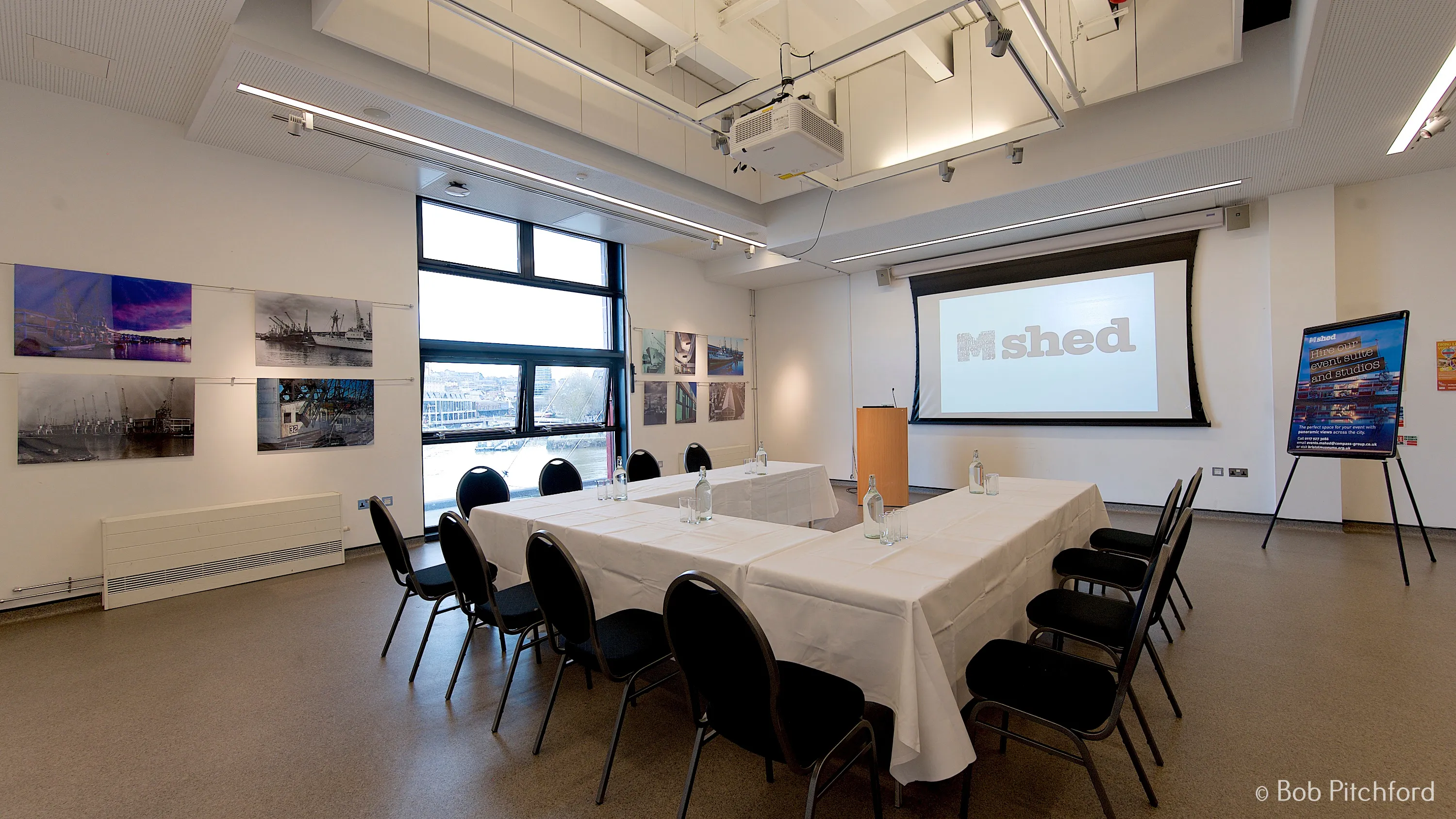 M Shed offers a variety of event spaces, each reflecting the building’s industrial heritage and harbourside character. The Harbour View Suite and Waterside Suite provide the largest settings, ideal for conferences, dinners and receptions, while Studios 1 and 2 offer a more intimate environment for smaller meetings and breakout sessions.